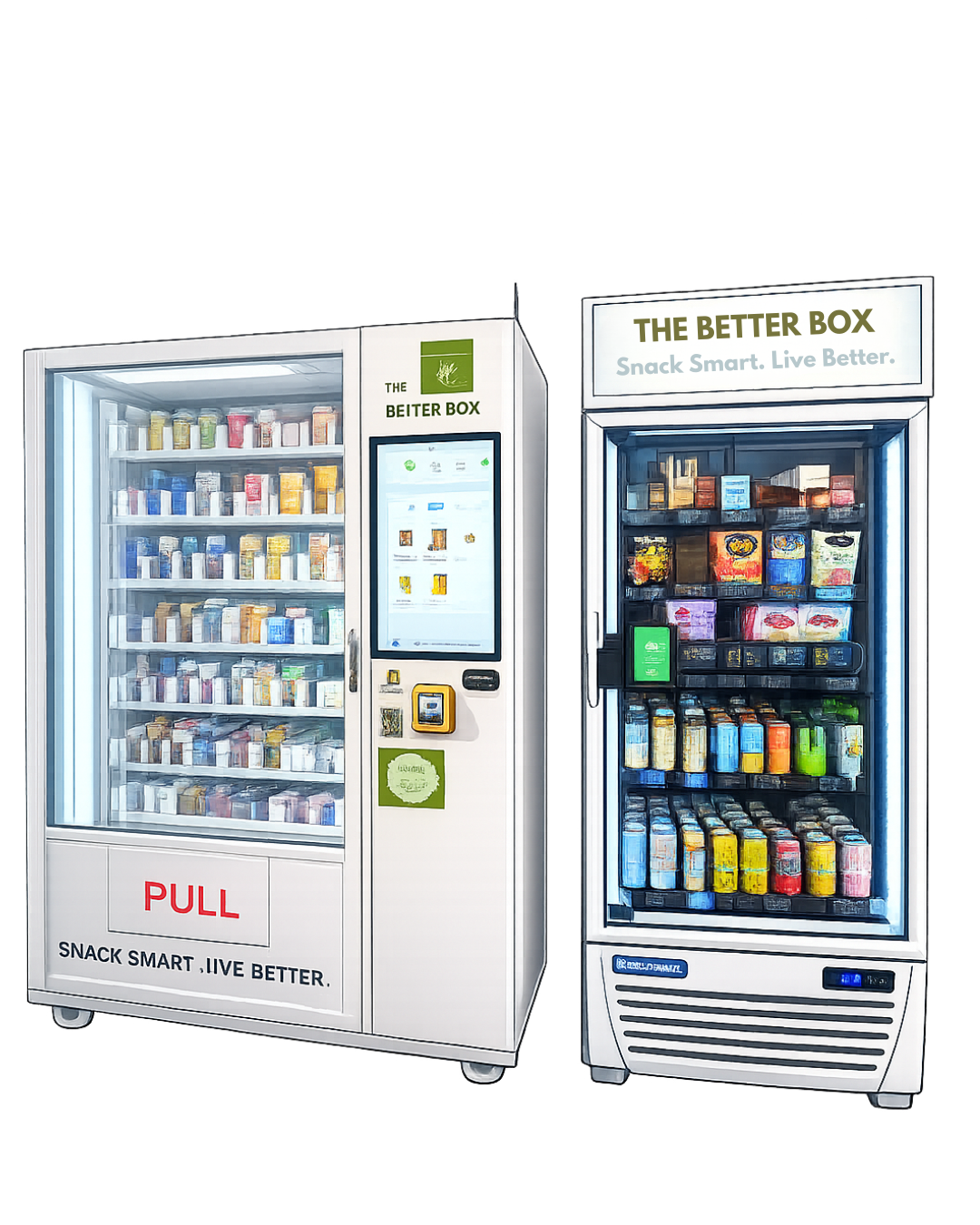 The Better Box is an organic vending machine company on a mission to make grab-and-go food actually good for you. Designed for people who care about what they put in their bodies—even when they’re in a rush—The Better Box offers a curated selection of clean, nutritious snacks and drinks without the artificial junk. Every item is thoughtfully chosen to be organic, free from what we don’t want to eat, and packed with real ingredients that fuel your day, not derail it.
